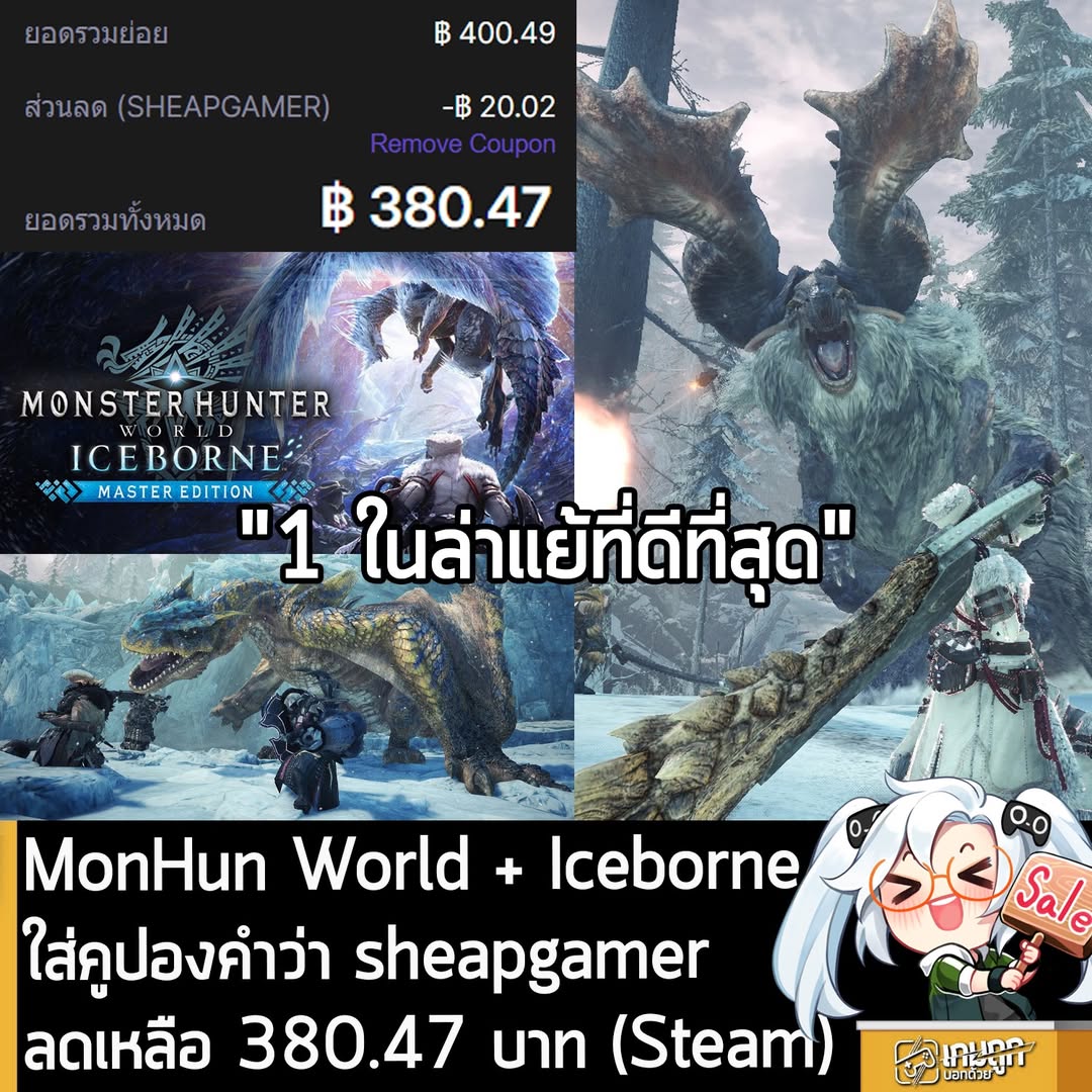ส่วน Monster Hunter World: Iceborne DLC ใส่คูปองคำว่า sheapgamer ลดเหลือ 235.58 บาท (Steam)