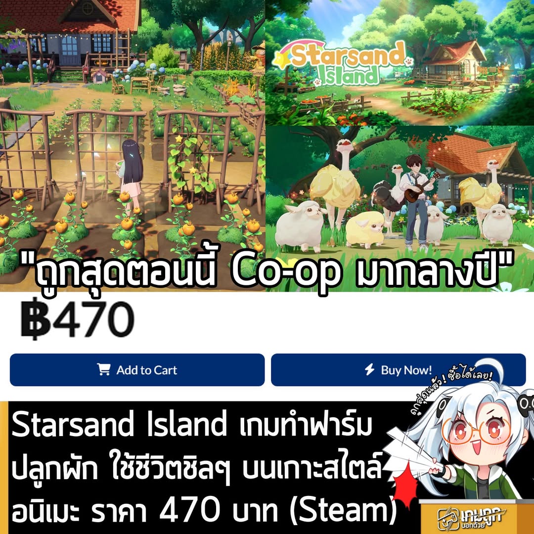 ใน Steam โซนไทย เคยลด 30% เหลือ 503 บาท ครั้งนี้ของ Play-Asia ถูกกว่านิดหน่อย ส่วนตัวเกมก็ เกมทำฟาร์มปลูกผัก แต่งบ้าน จีบ NPC และใช้ชีวิตชิลๆ บนเกาะสไตล์อนิเมะ ที่แม้ว่าจะยังเป็น Early Access แต่ก็มีเนื้อหาคอนเทนต์ให้เล่นนับ 100 ชั่วโมง และตัวเกมจะมีโหมด Co-op ตามมาช่วงกลางปีนี้ด้วย
