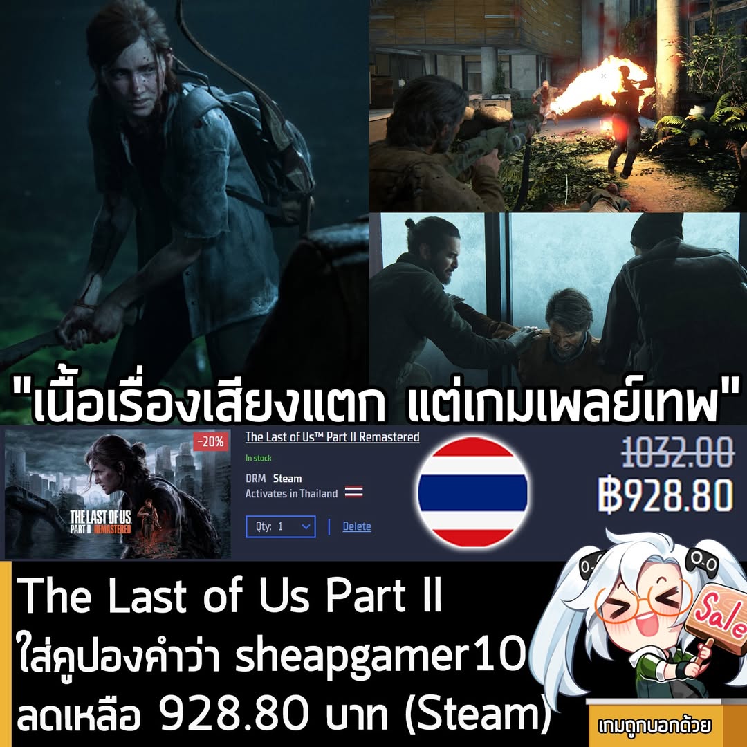 ลด 20% เท่าบน Steam โซนไทย แต่ถูกกว่าด้วยคูปองลดอีก 10% ส่วนตัวเกมก็ภาคต่อของเกมแอ็กชันผจญภัยที่ขับเคลื่อนด้วยเนื้อเรื่องในโลกล่มสลายที่เต็มไปด้วยซอมบี้จากเชื้อรา แม้ว่าเนื้อเรื่องภาคนี้ จะทำให้เกิดการวิพากษ์วิจารณ์อย่างหนัก และ 1 ในเกมที่เสียงแตกด้านเนื้อเรื่องมากที่สุด เพราะมีทั้งคนชอบและเกลียด แต่ถ้าในแง่ของเกมเพลย์ ก็เรียกได้ว่าเป็น 1 ในเกมที่มีเกมเพลย์ดีที่สุดเท่าที่เคยมีมา เกมมีซับไตเติลภาษาไทยด้วย