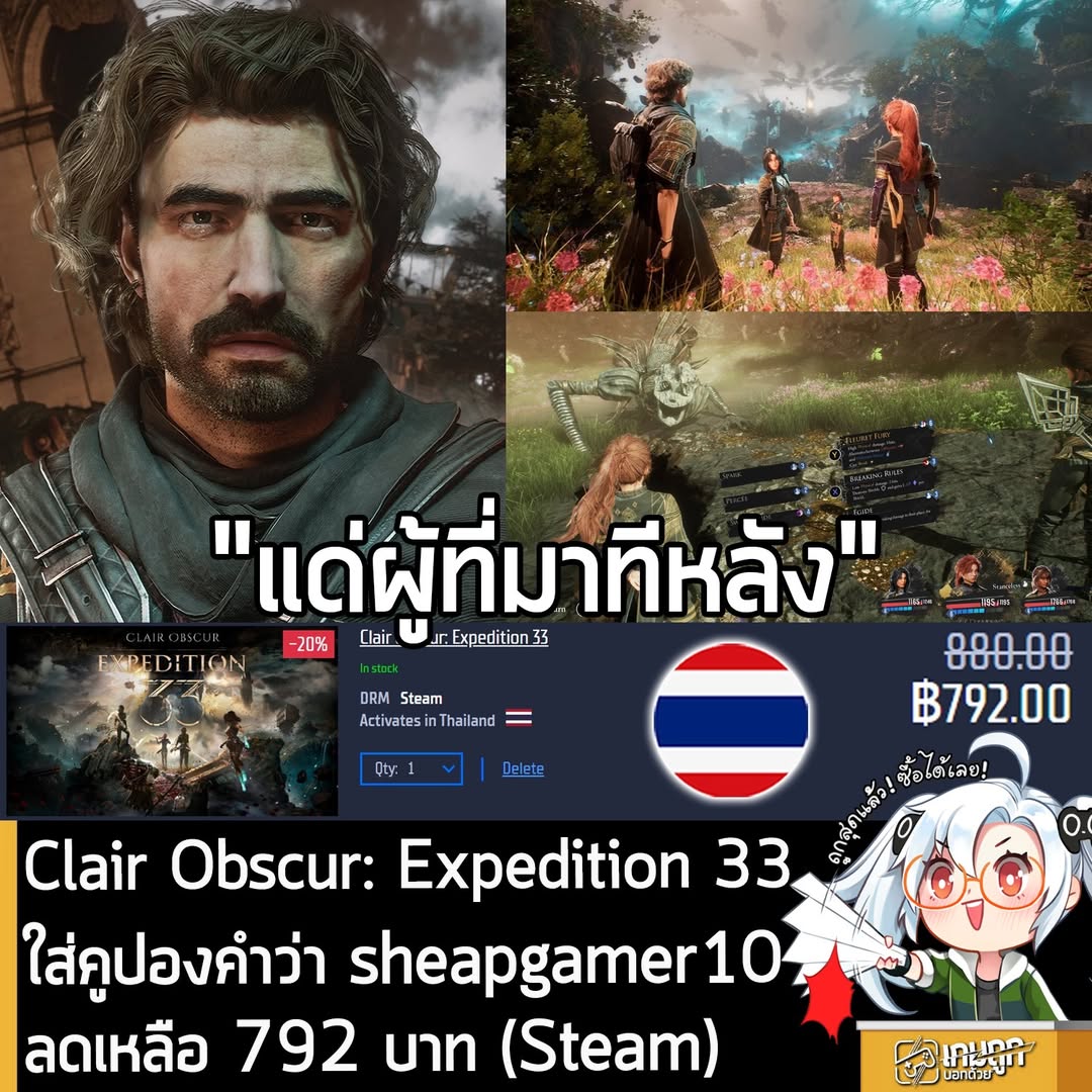Clair Obscur: Expedition 33 กำลังลดราคา 20% ใน Gamersgate เหลือ 880 บาท ใส่คูปองคำว่า sheapgamer10 ลดได้อีก 10% เหลือ 792 บาท (Steam)