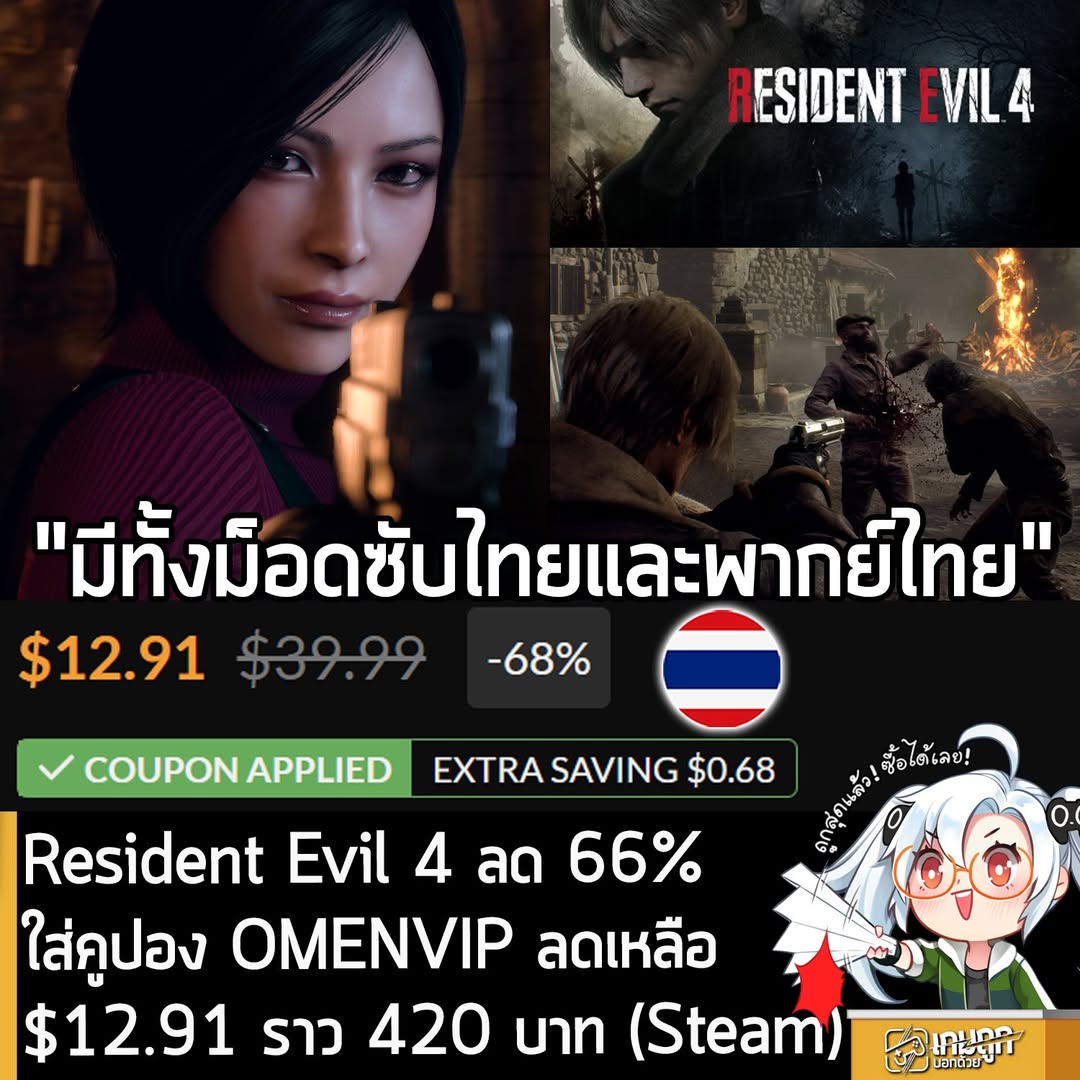 ส่วน Resident Evil 4 Gold Edition ใส่คูปองคำว่า OMENVIP ลดเหลือ $16.62 หรือประมาณ 540 บาท (Steam)