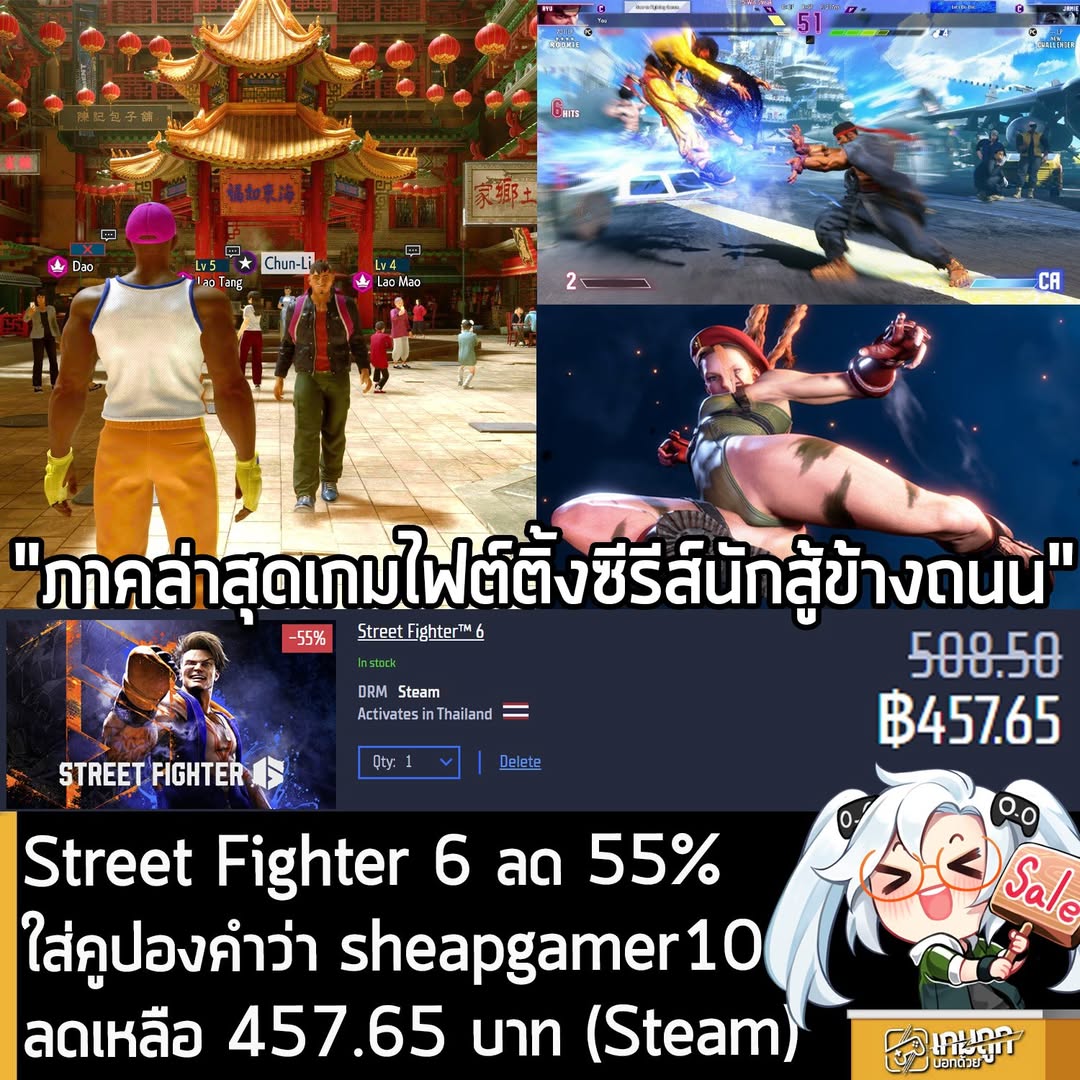 Street Fighter 6 กำลังลดราคา 55% ใน Gamersgate เหลือ 508.50 บาท ใส่คูปองคำว่า sheapgamer10 ลดได้อีก 10% เหลือ 457.65 บาท (Steam)