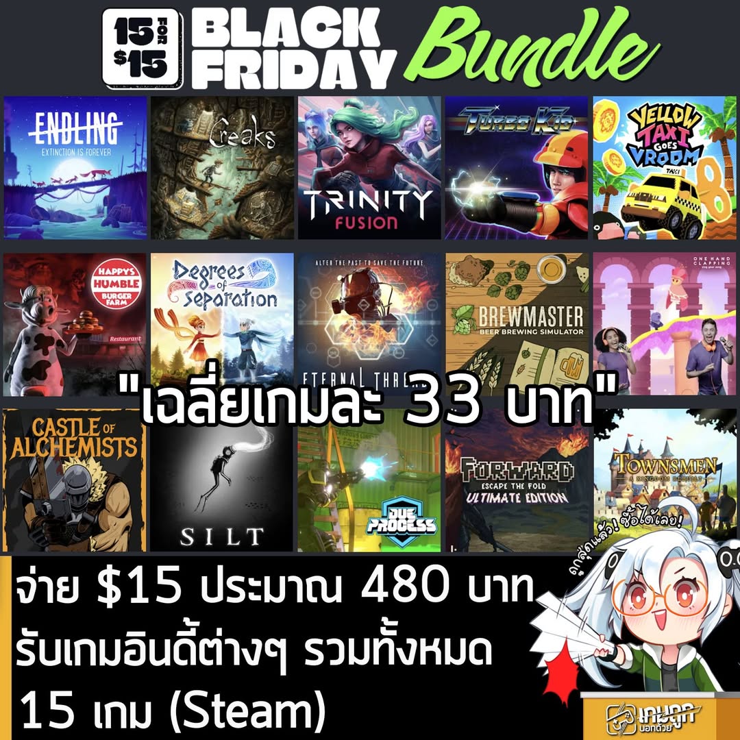 แพ็ครวมเกมอินดี้รับเทศกาล Black Friday ส่วนเกมเด่นๆ ก็ Endling, Creaks, Yellow Taxi Goes Vroom, Happy’s Humble Burger Farm, Eternal Threads, One Hand Clapping สรุปเฉลี่ยเกมละ $1 ใครยังไม่มีสักเกมก็คุ้มเลย