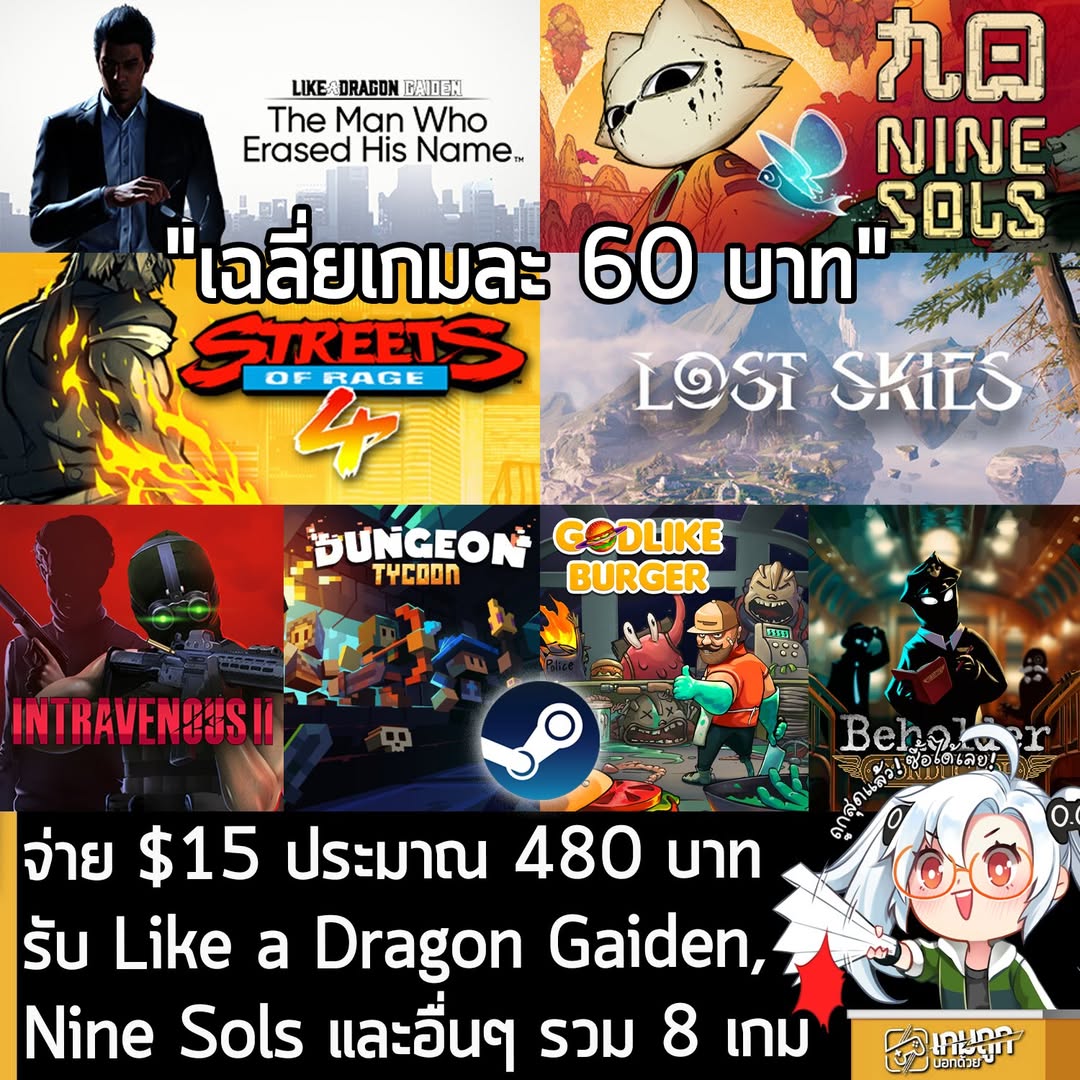 กลับมาเป็นแพ็คสุดคุ้มอีกเดือน เกมเด่นในแพ็คนี้ แน่นอนว่า Nine Sols เกม Metroidvania ในโลกเต๋าพังก์ เกมมีม็อดไทยด้วย โหลดที่เพจ อาสาแปล, Like a Dragon Gaiden: The Man Who Erased His Name ภาคสปินออฟที่เล่าเรื่องราวระหว่างภาค 6 และ 8 ภาคนี้มีคุณ Kson ด้วย, Streets of Rage 4 ตำนานเกมต่อยตีเดินด้านข้าง, Lost Skies เกม Co-op 6 คน สร้างเรือเหาะ ต่อสู้กับสัตว์ร้ายและสำรวจเกาะลอยฟ้า, Intravenous II ภาคต่อเกมแอ็กชันลอบเร้นสุดโหด สรุปแพ็คนี้เฉลี่ยเกมละ 60 บาท ได้แค่ Nine Sols กับ Like A Dragon Gaiden ก็คุ้มแล้วววว