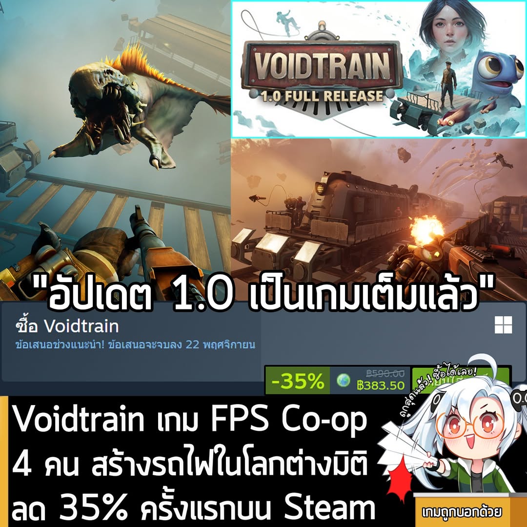 ลด 35% ครั้งแรกของเกมนี้บน Steam ที่ลดครั้งนี้ เพราะเกมเพิ่งจะออกจาก Early Access และกลายเป็นเกมเต็ม 1.0 ส่วนตัวเกมก็เกม FPS Co-op 4 คนที่ให้คุณได้เล่นเป็นวิศวกรสมาชิกของทีมรถไฟด่วนข้ามมิติ สำรวจโลกต่างมิติ สร้างและอัปเกรดรถไฟ คราฟต์อาวุธ ต่อสู้กับสัตว์ร้ายต่างๆ และเอาตัวรอดในมิติลึกลับที่เรียกกันว่า The Void